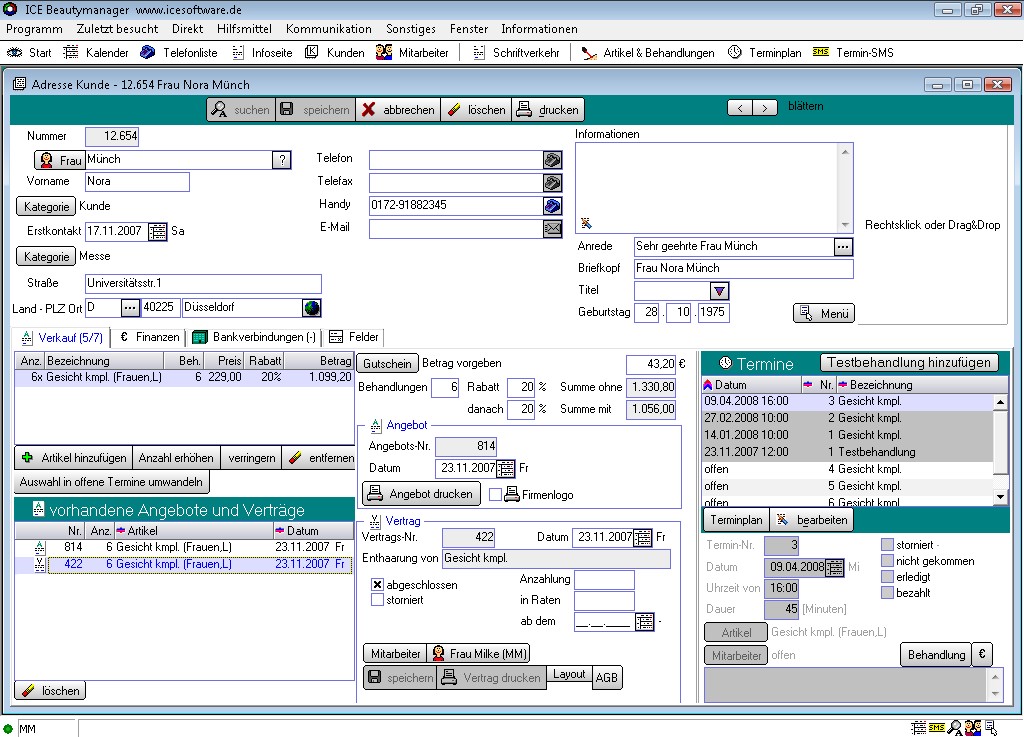 zählen auch Adressen, Mitarbeiter, Behandlungen,