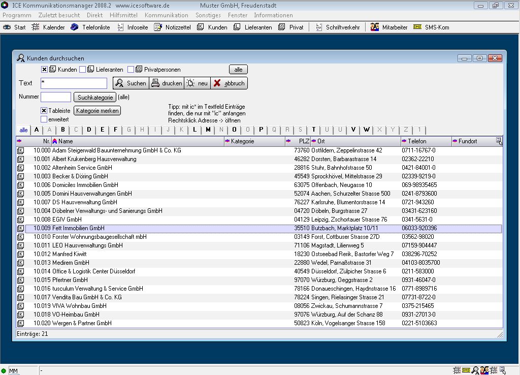 - Globalsuchen, um Kunden, Lieferanten, Ansprechpartner auf