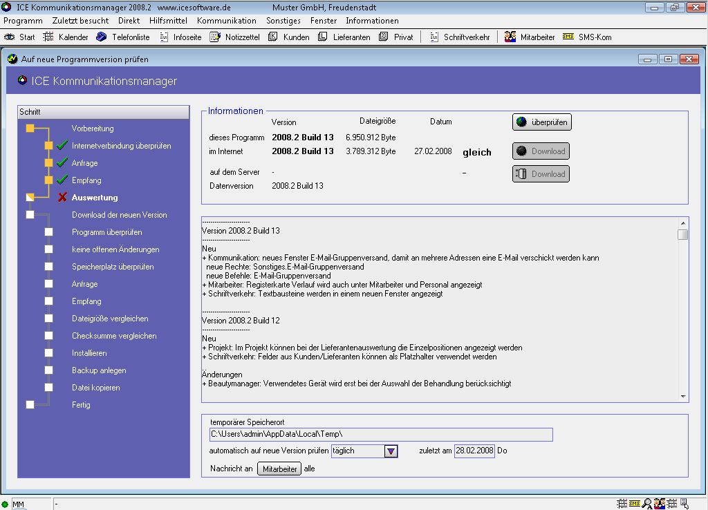 Programm-Updates stehen für den Kommunikationsmanager