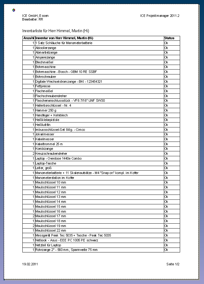 Das Inventar wird im Modul in einer Liste aufgeführt: