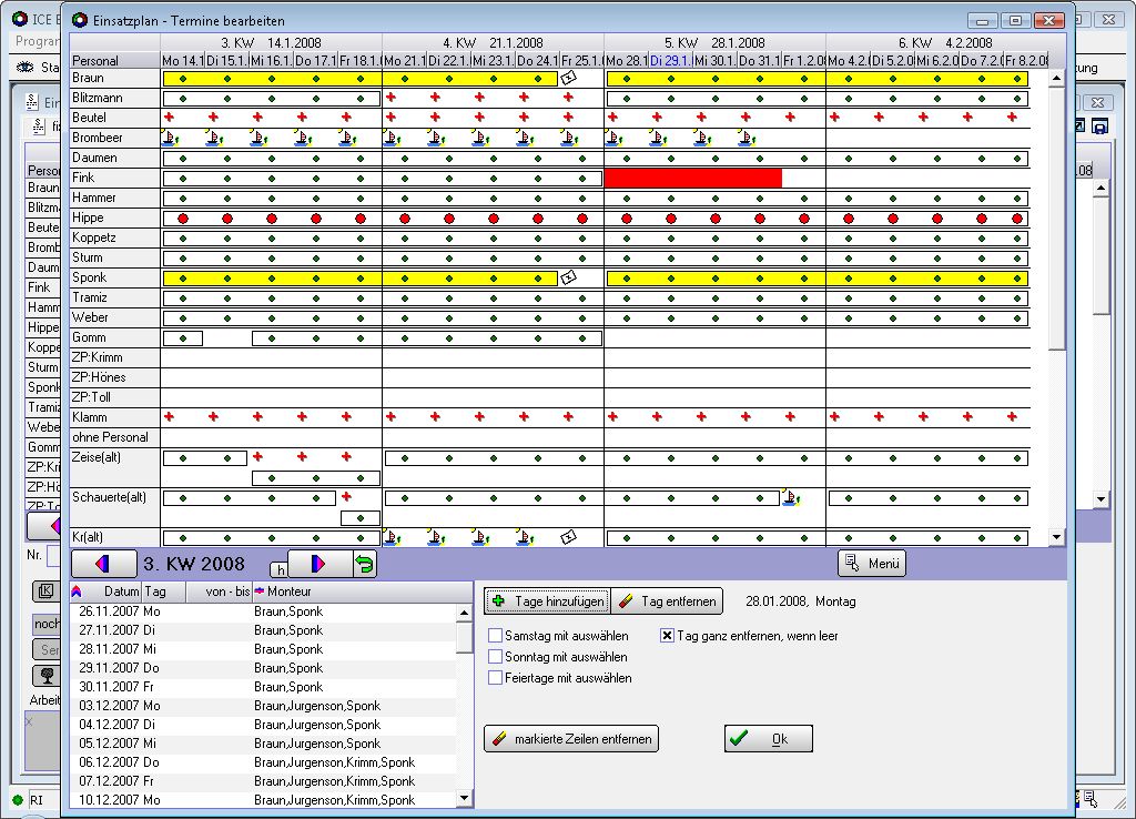 Im Einsatzplan sehen Sie, welcher Mitarbeiter wann,