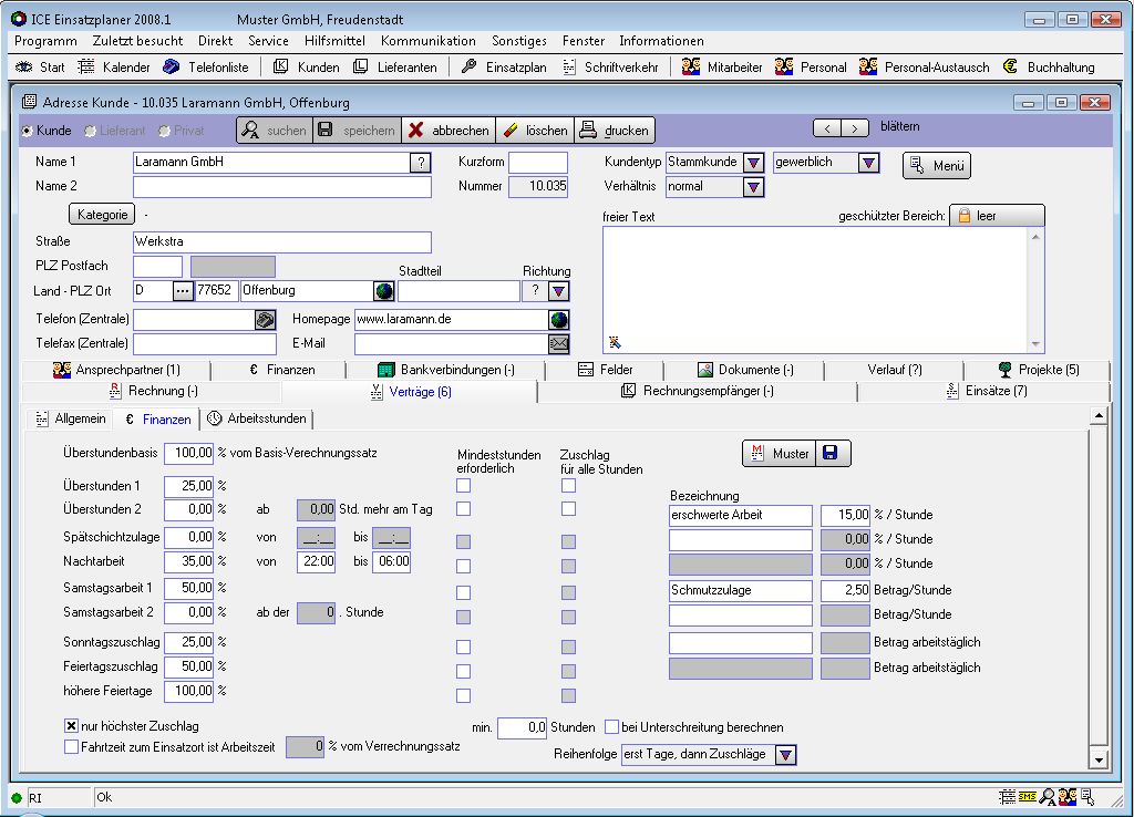 Verträge, Projekte, Einsätze und vieles mehr angelegt