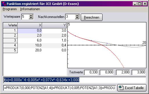 Funktion erstellt daruf eine Excel-Tabelle, in der die Wertepaare